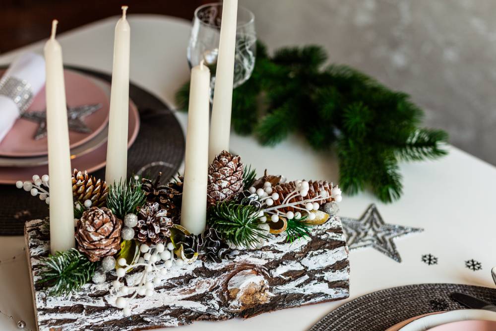 - Masada renk ve doku katacak doğal malzemeler (mini çam kozalakları, dallar veya kuru meyveler)