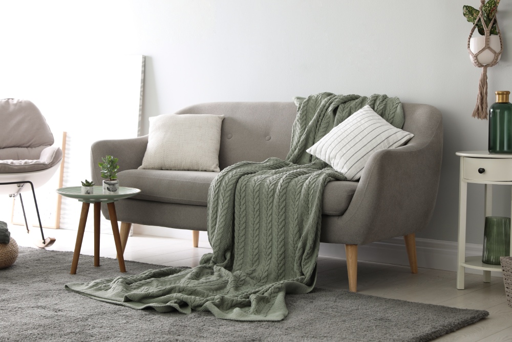 - Kanepe üzerine farklı dokularda birkaç battaniye ekleyebilirsiniz.